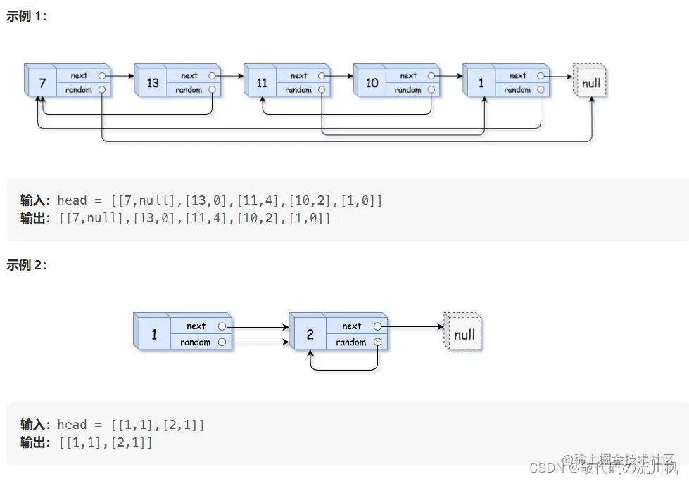 n的链表,每个节点包含一个额外增加的随机指针random,该指针可以指向链表中的任何节点或空节点。