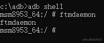 (3)待手机被正常控制后(光标前显示#,而非$),在adb shell下输入“ftmdaemon”命令使手机进入FTM模式(不同的Qualcomm芯片可能使用不同指令激活FTM模式,指令“ftmdaemon”适用于WCN3260/3280等产品,指令“ftmdaemon -n”则适用其他产品)。如下图所示: