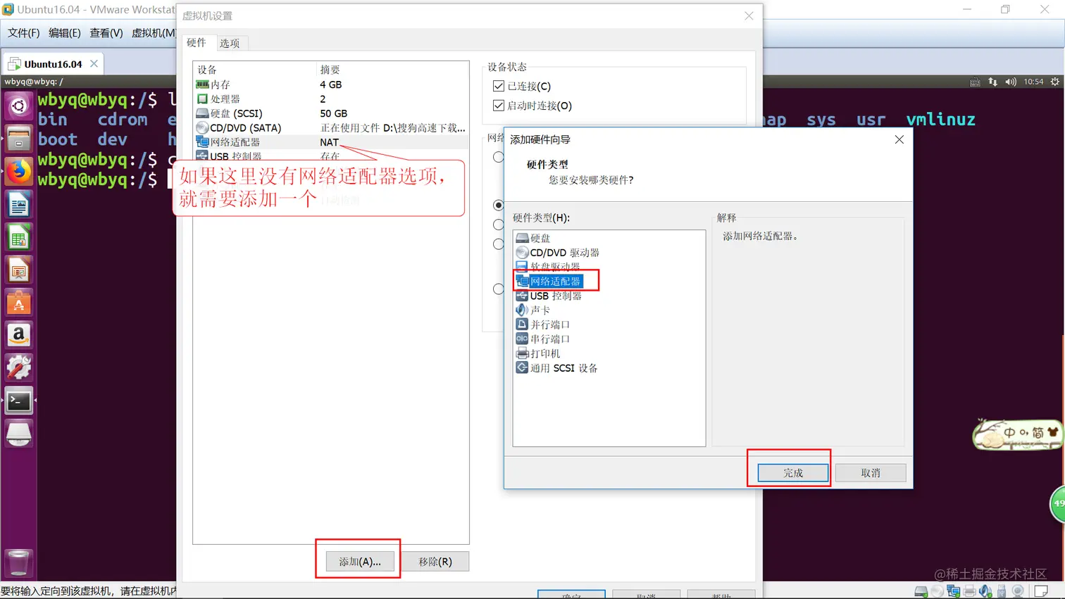 5. 如果没有网络适配器这个选项,需要添加一个