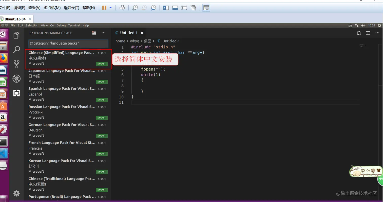 将下载好的VsCode装包拷贝到ubuntu系统共享目录下,进行安装: