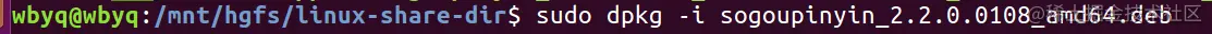 将下载好的搜狗输入法安装包拷贝到ubuntu系统共享目录下,进行安装: