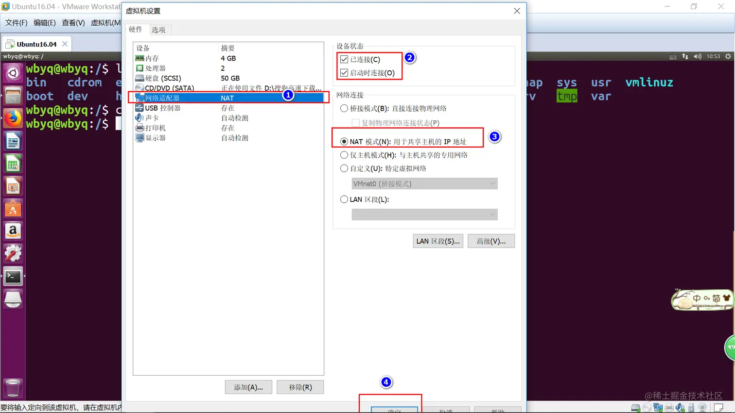 4. 选择上网模式为NAT模式