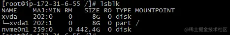 看到 的确 nvmeOn1没有挂载,但是存在。