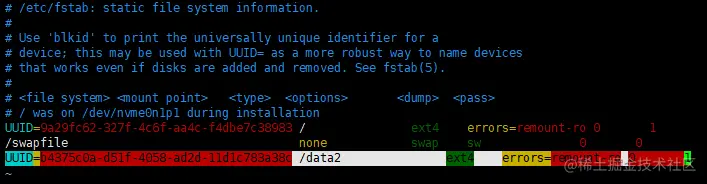 UUID=b4375c0a-d51f-4058-ad2d-11d1c783a38c /data ext4 errors=remount-ro 0 1