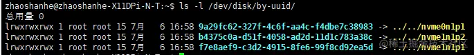 获取硬盘的UIDD(实际上应该是../../nvmeOn1,因为我这里显示成了../../nvme1n1p2)
