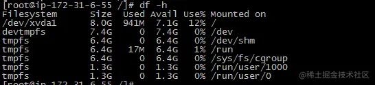 df -h #显示目前在Linux系统上的文件系统的磁盘使用情况统计。