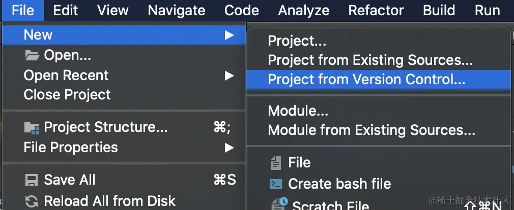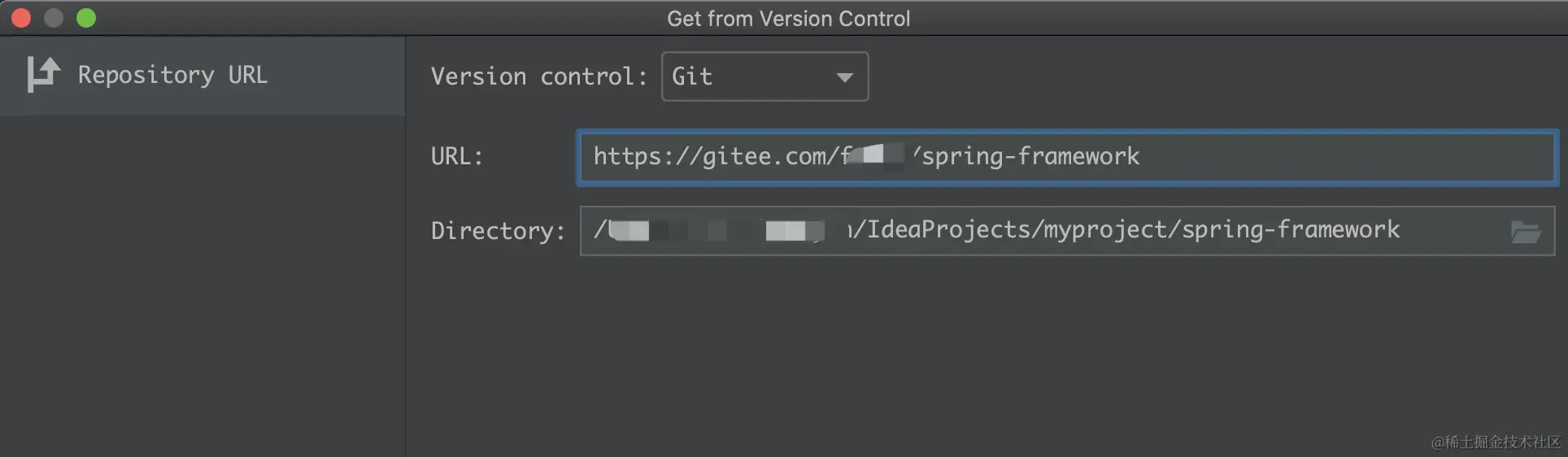 首先获取spring代码,除了可以在命令行中使用命令git clone外,也可以在idea中导入,方式如下: