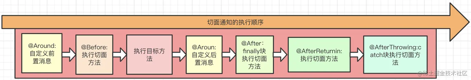 注意区别@AfterReturning、@AfterThrowing 与 @After 通知的执行时机。