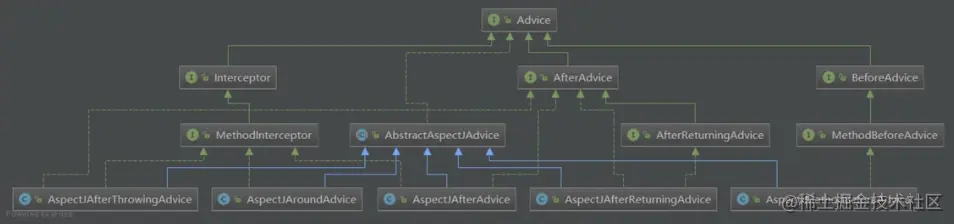 关于advice,后面在分析切面的执行时会详细分析,这里只需知道“不同的切面类型,最终会封装为不同的advice”即可。