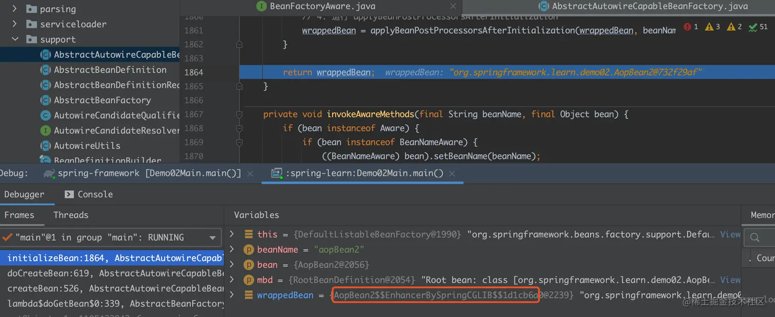 再看看AopBean2运行到此处的变化: