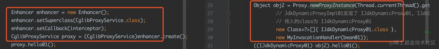 Enhangcer进行代理对象创建,一个是使用封装好的方法进行对象创建。