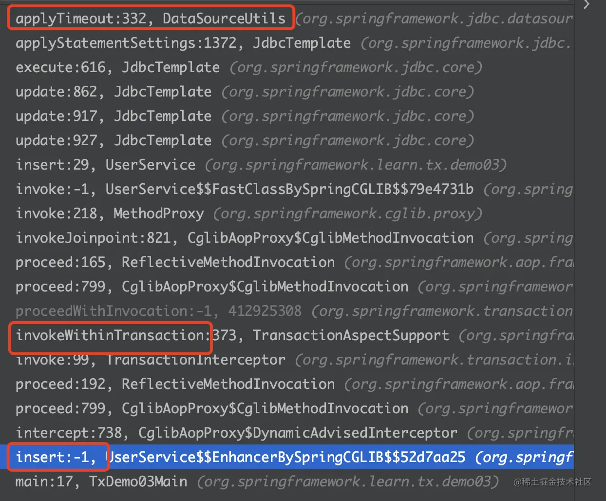suspend(...)方法中最重要的就是挂起事务的操作了,也就是doSuspend(transaction),该方法 位于``中,直接看代码: