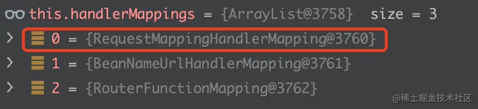 HandlerMethod:处理请求的方法,由于本文只分析@Controller方式的controller,可以简单理解为有@RequestMapping注解的方法;List<Interceptor>:拦截器链,如果有跨域配置,那么跨域配置会放在这个List的第一位。