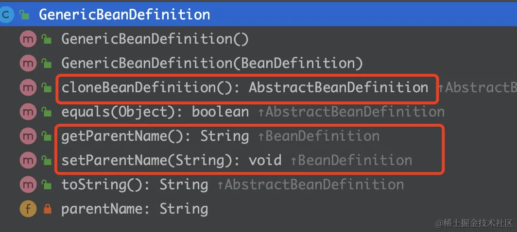 这是个通用的BeanDefinition,直接继承了AbstractBeanDefinition,它自身提供的方法如下: