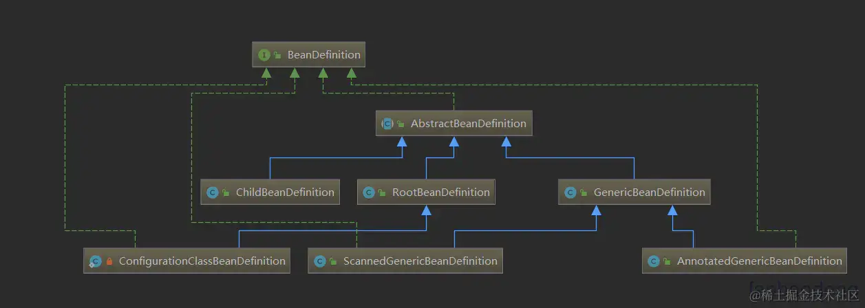 spring提供的BeanDefinition基本就是上图所示的几种了,这里我们主要看这向种: