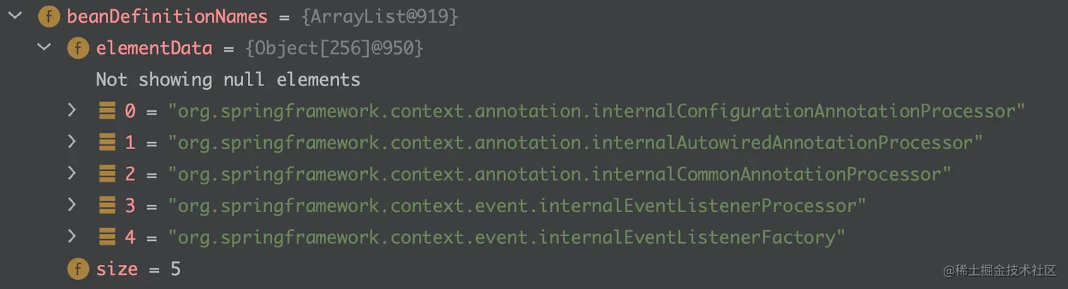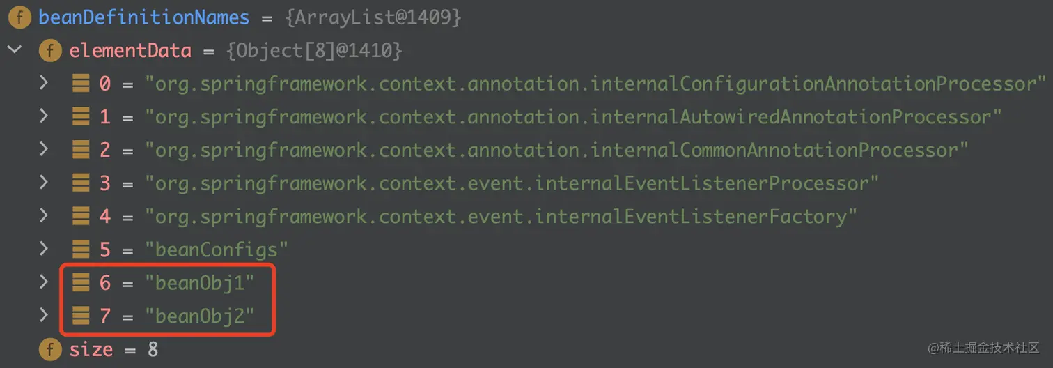 可以看到,BeanObj1、BeanObj2已经放入了BeanFactory的BeanDefinitionMap中了 。