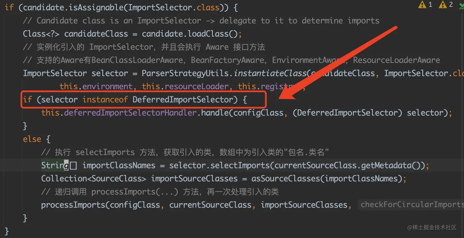 DeferredImportSelector是ImportSelector的子接口,具备ImportSelector的功能DeferredImportSelector提供了一个方法:Class<? extends Group> getImportGroup(),该方法返回的是当前DeferredImportSelector实例所在的分组。