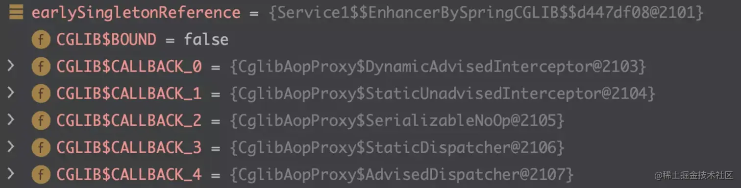 earlySingletonObjects | service1$$EnhancerBySpringCGLIB |