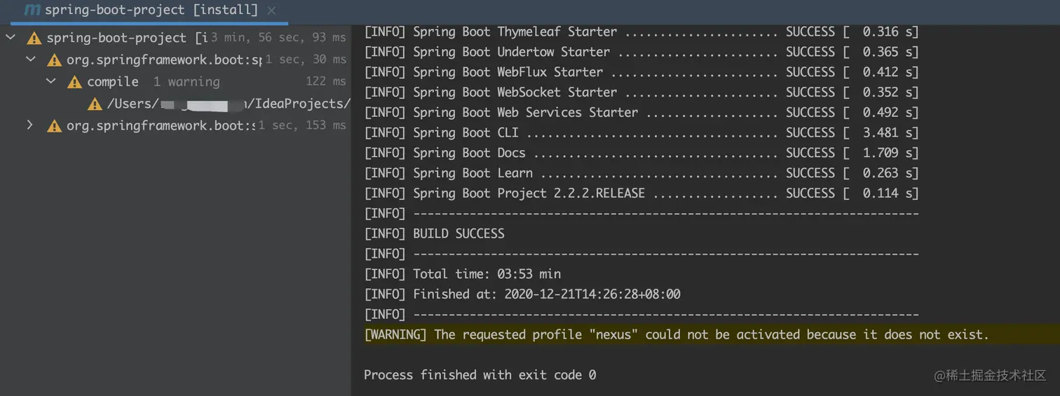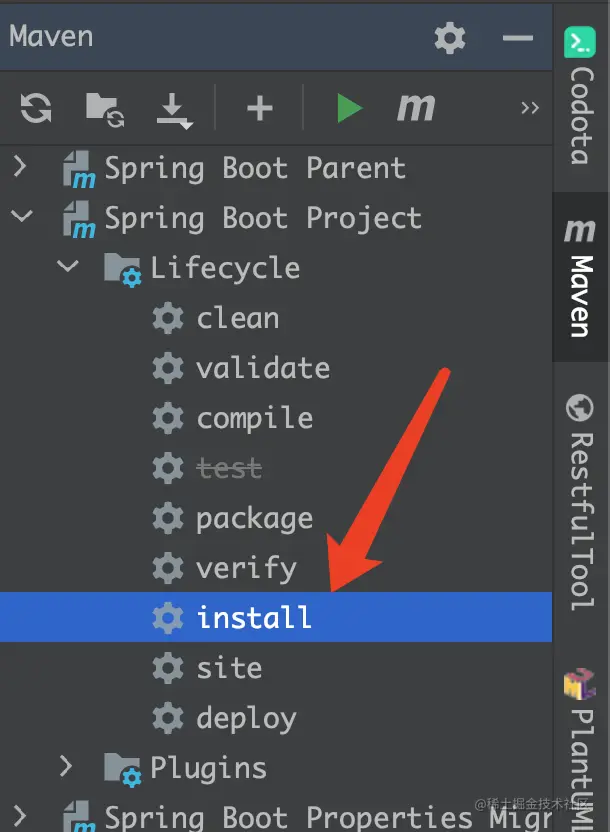 springboot 源码编译比较简单,如果开发工具是idea,直接运行Spring Boot Project 模块的 install命令即可: