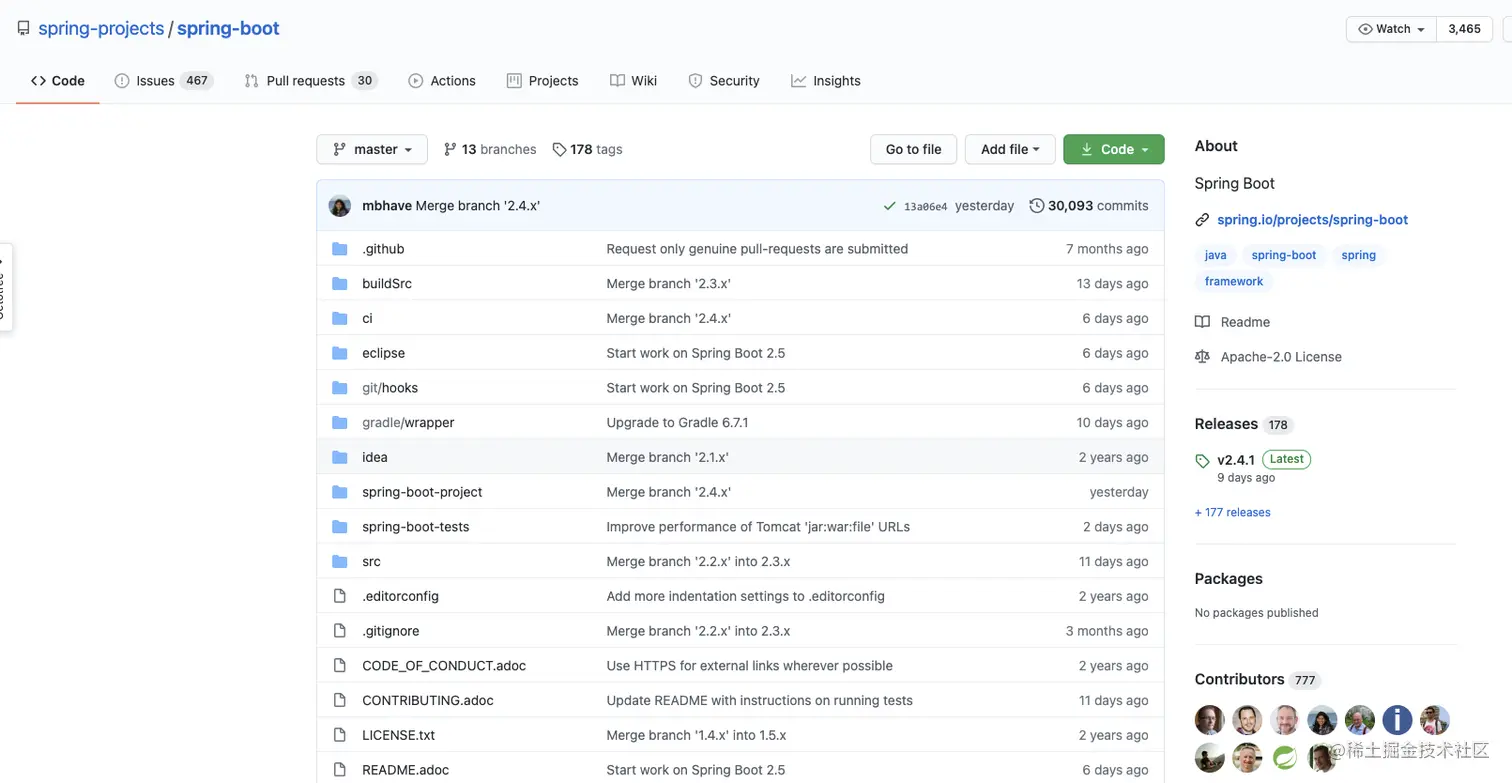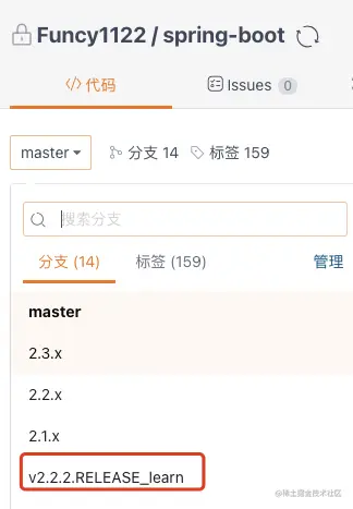 springboot的版本那么多,当前master是处于哪个版本呢?最新发布的版本吗?这些比较难说清,所以正确方式是,基于已发布的版本创建自己的分支。 -