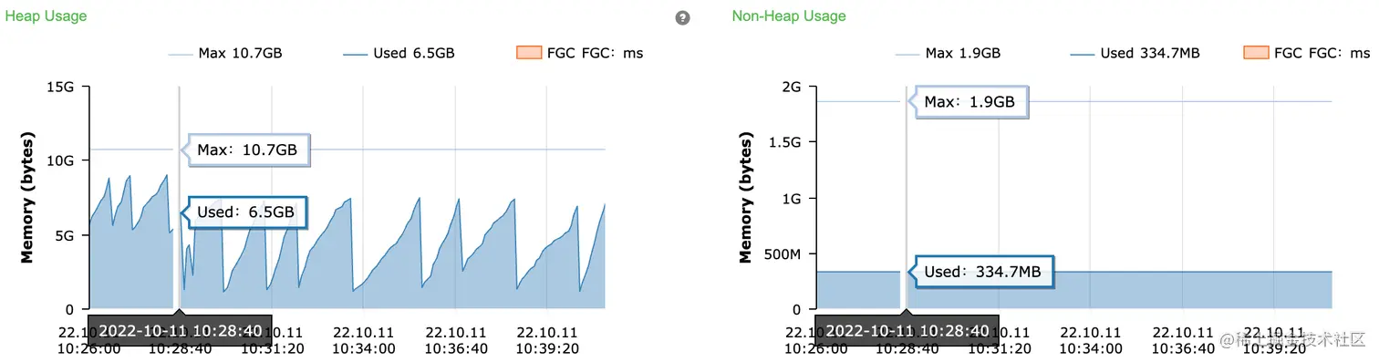 从图中我们可以看出应用并没有发生full gc,但是确有10s钟停顿时间,并且是偶发现象,对于这种问题一般只能通过分析这个时间点gc日志,找出耗时时间较长的那段gc日志(分析过程略去)。通过分析发现,gc remark阶段gc耗时较长。