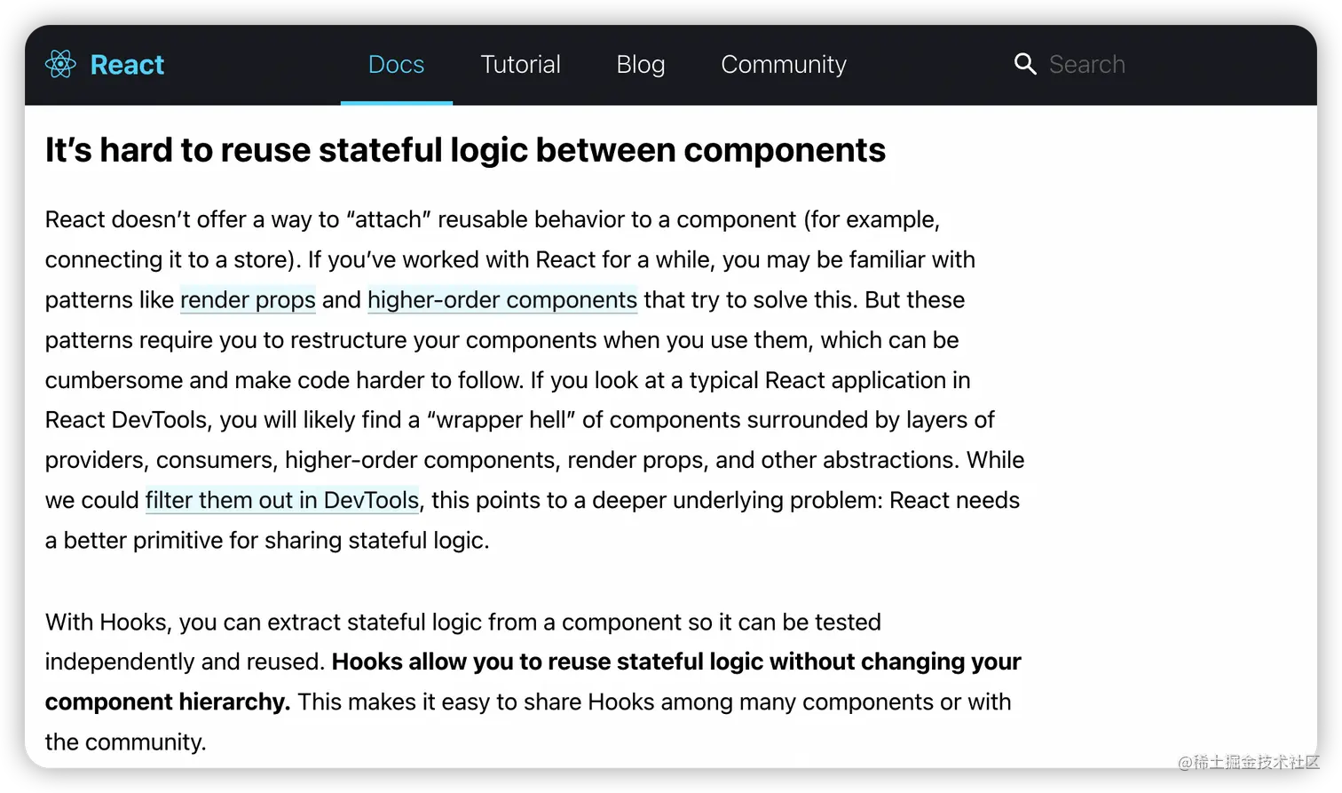 React Hooks 可以说是 Headless UI 得以实现的基石,为什么这么说,这里我们首先聊聊 React Hooks。