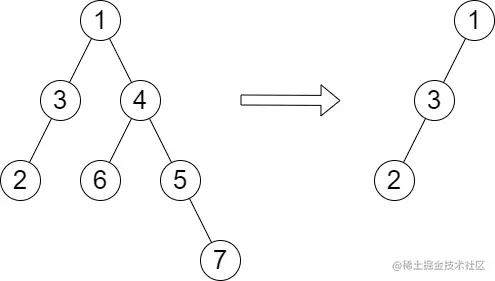 - 移除以 4 为根节点的子树。树的高度变为 3(路径为 5 -> 8 -> 2 -> 6)。