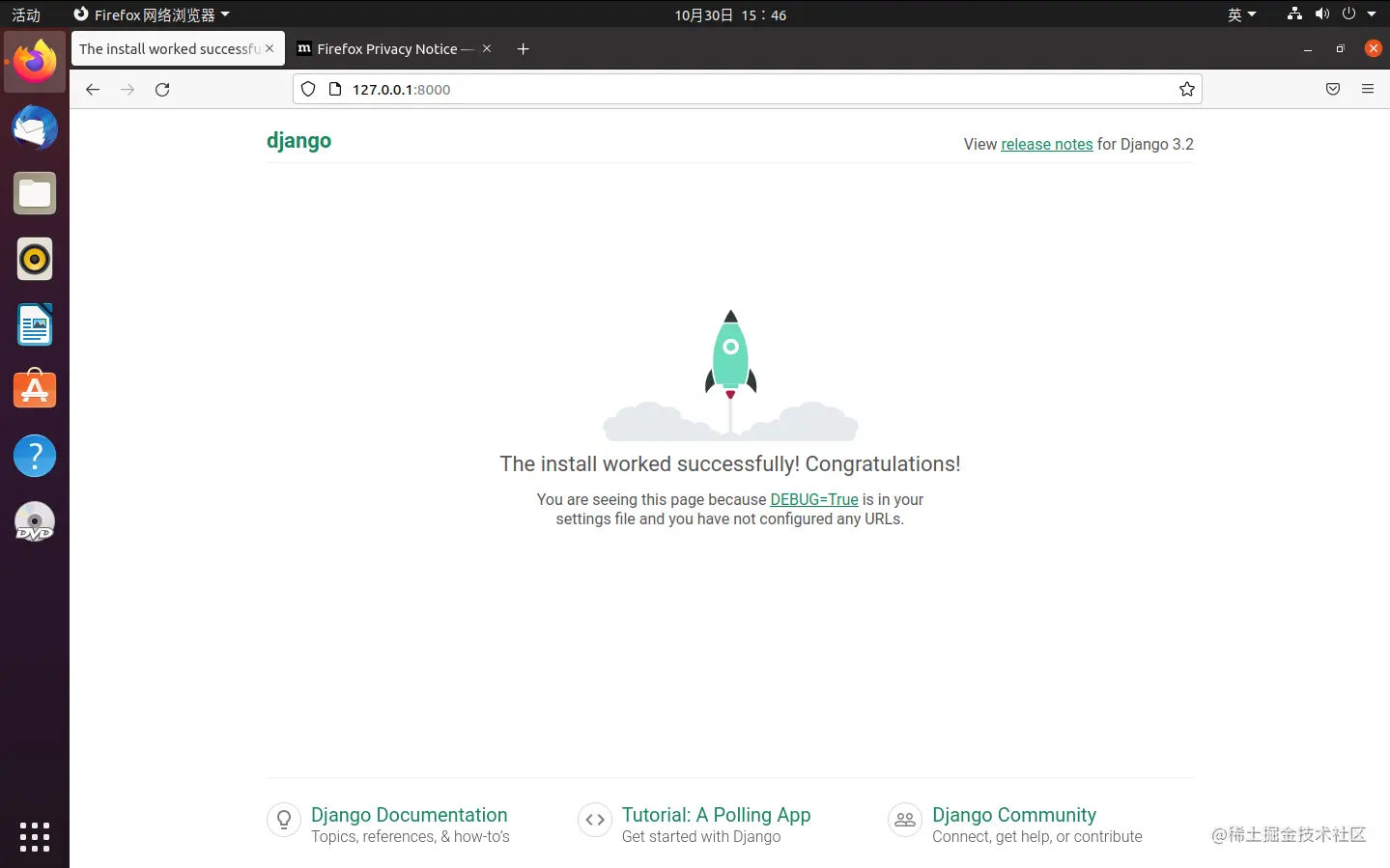 然后在虚拟机内直接输入127.0.0.1,出现了Django页面