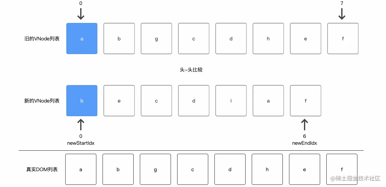 去年写了一篇文章手写一个虚拟DOM库,彻底让你理解diff算法介绍虚拟DOM的patch过程和diff算法过程,当时使用的是双端diff算法,今年看到了Vue3使用的已经是快速diff算法,所以也想写一篇来记录一下,但是肯定已经有人写过了,所以就在想能不能有点不一样的,上次的文章主要是通过画图来一步步展示diff算法的每一种情况和过程,所以就在想能不能改成动画的形式,于是就有了这篇文章。当然目前的实现还是基于双端diff算法的,后续会补充上快速diff算法。