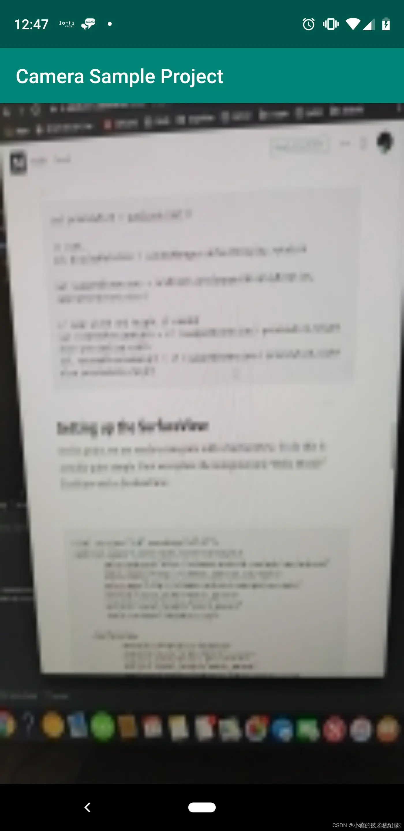 如果你试着运行这个,一切都会好起来的。但是你不会看到任何预览出现…这是因为我们还没有调用startCameraSession()!事实上,它并没有那么简单,因为SurfaceView必须异步准备自己,即使在“活动”是交互式的之后,它也可能没有准备好。