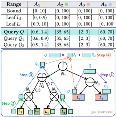 得到的模型 F可以处理来自外界的查询 Q。这里考虑的是范围查询,对于涉及到的属性 Ai,假设它的域为 [Li,Ui],则 Q 可表示为: