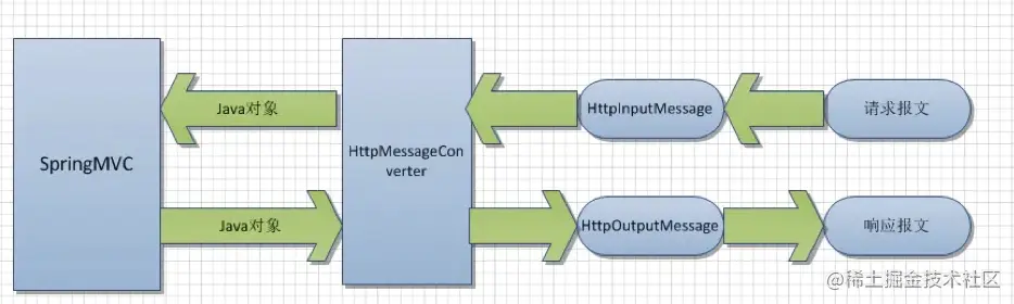 利用SpringMVC框架,可以使得我们在开发时,只要在代码中使用@RequestBody和@ResponseBody两个注解,就可以分别完成从请求报文到对象和从对象到响应报文的转换。而在源码内部,其实这种灵活的消息转换机制就是利用HttpMessageConverter来实现的。