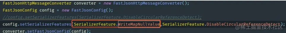 在FastJson配置实体时,会调用setSerializerFeatures方法配置多个过滤方式,常用的配置如下: