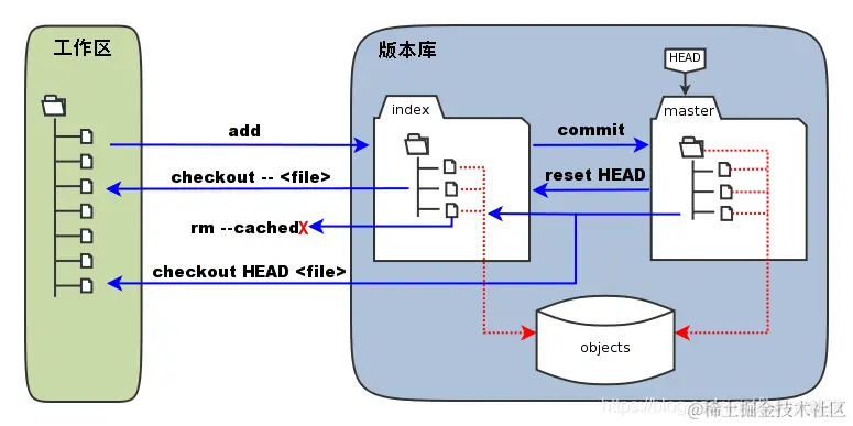 git reset命令既可以回退版本,也可以把暂存区的修改回退到工作区。当我们用HEAD时,表示最新的版本。