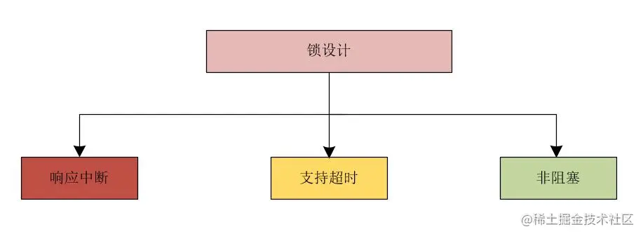 了解了synchronized的局限性之后,如果是让我们自己实现一把同步锁,我们该如何设计呢?也就是说,我们在设计锁的时候,要如何解决synchronized的局限性问题呢?这里,我觉得可以从三个方面来思考这个问题。