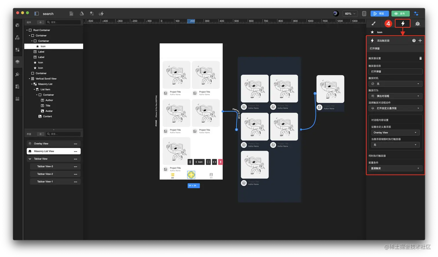3.配置首页发布icon触发器和动画