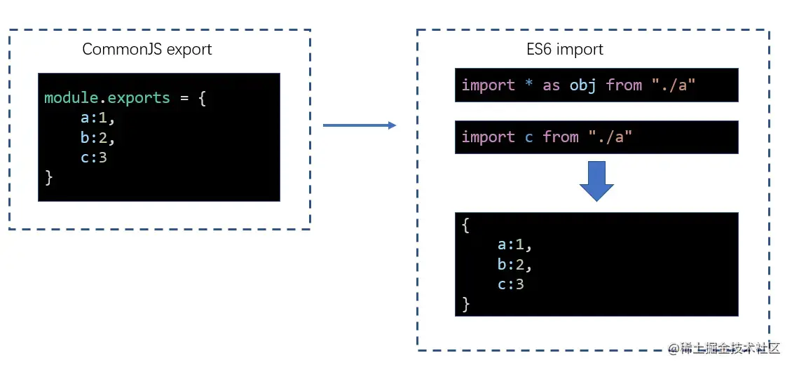 webpack 是支持两种模块化代码共存的,虽然不建议这样做。首先我们先看一下他们互相导入的时候的导入结果是什么样的: