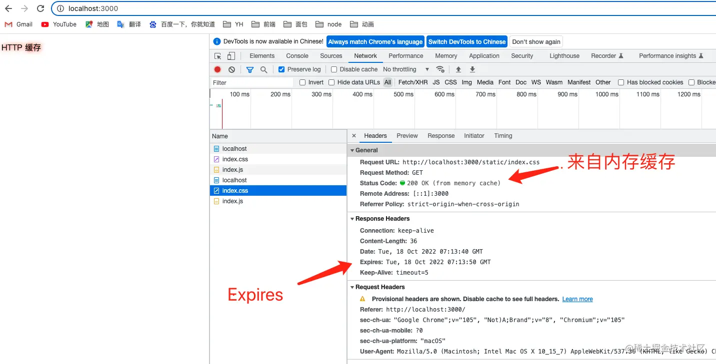 那么,该资源在2022-10-18 23:59:59 之前,都会去本地的内存(memory cache)或硬盘(disk cache)中读取,不会去服务器请求。