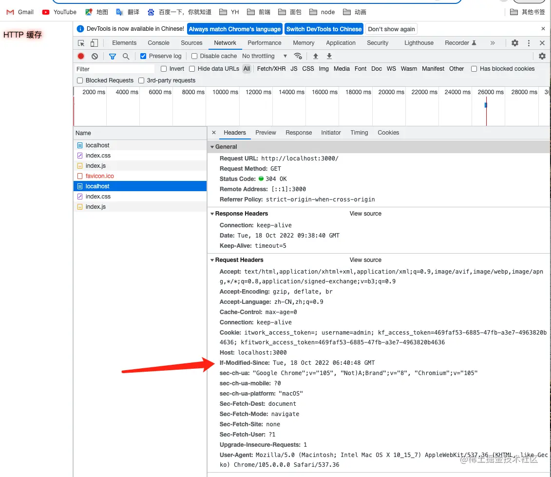 而这个请求头中的If-Modified-Since就是服务器第一次修改时候给他的时间,也就是上图中的
