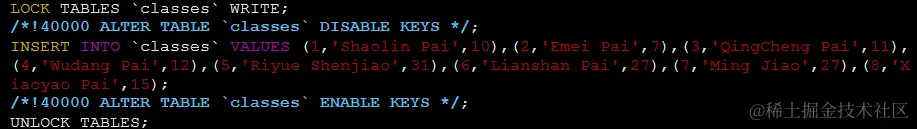 使用--extended-insert=true导出的表如下图这种,一个很长的insert语句。