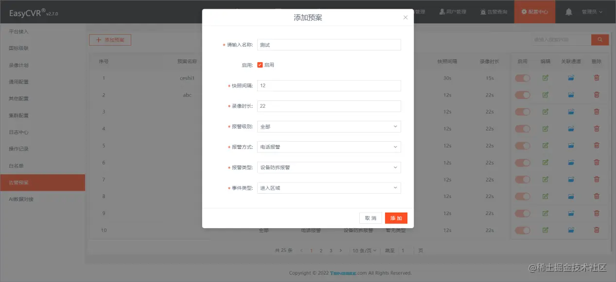 EasyCVR平台的告警功能可以对监控设备上传的告警(离线、遮挡、故障等)及AI监测的异常情况进行及时告警,可抓取所有设备记录的告警状态与信息,可根据设备告警信息进行视频截取,获取告警时刻的视频截图,同时,平台还将告警消息通过语音、短信、APP、消息通知、微信、邮件等方式推送给管理人员,方便管理人员及时查看与处理。