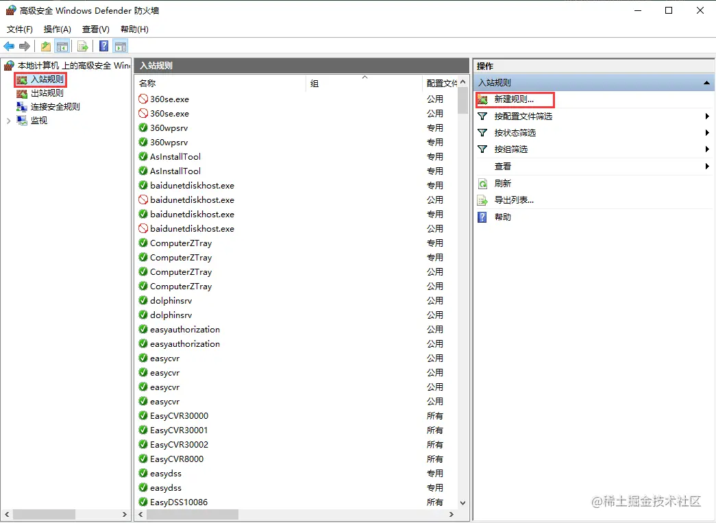 4、根据软件需要的端口,建立入栈规则;
