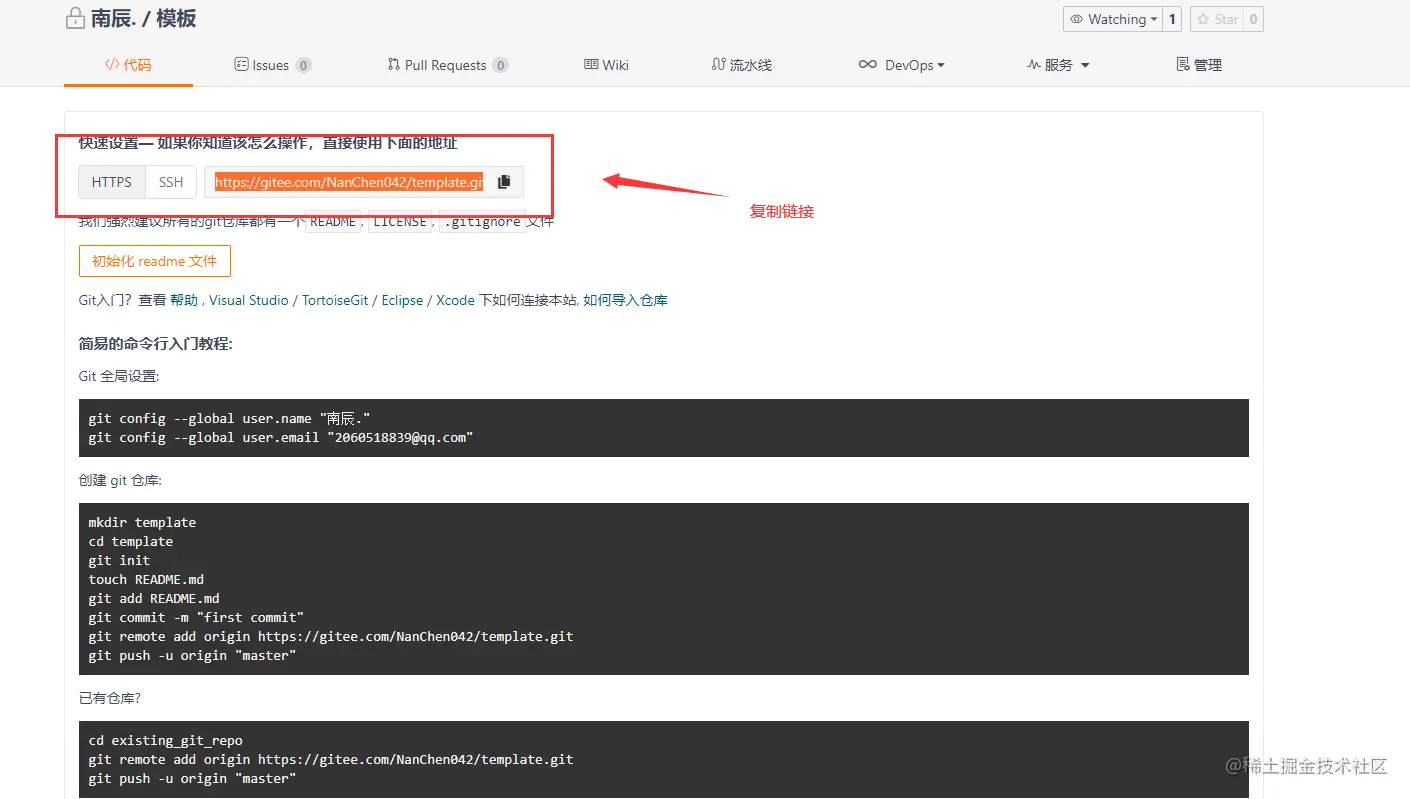 之后打开git中的这个仓库 输入其中的5,7,8行的命令