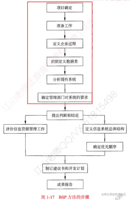 企业系统规划(Business System Planning,BSP)主要用于大型信息系统的开发。是自上而下的系统规划,而实现是自下而上分步进行。