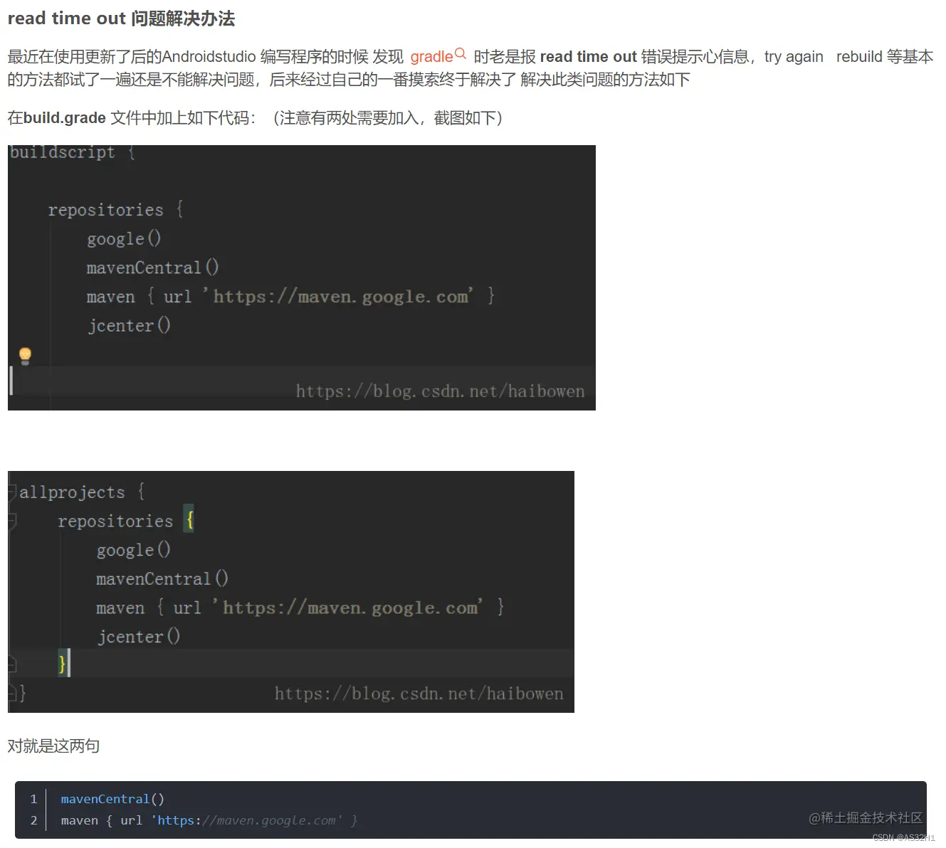 原文地址: (9条消息) Android Studio read time out 解决办法_haibowen的博客-CSDN博客