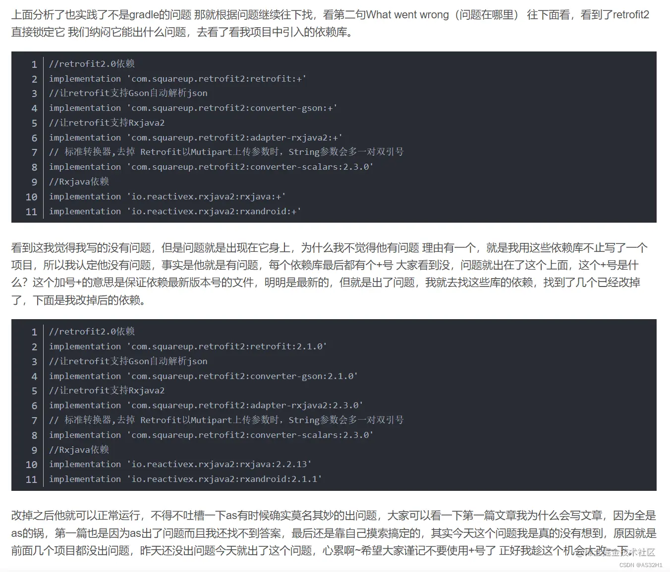 总结: 遇见突发问题不要慌,特别是AS多试两次,重启下电脑可能就好了;实在不行就看问题是什么一个个解决,报错的时候都会有说明的,以下五种代表性的方法可能都是在不同的报错时才有用,已经把核心的截图出来了,仅供参考,如有侵权,联系删除