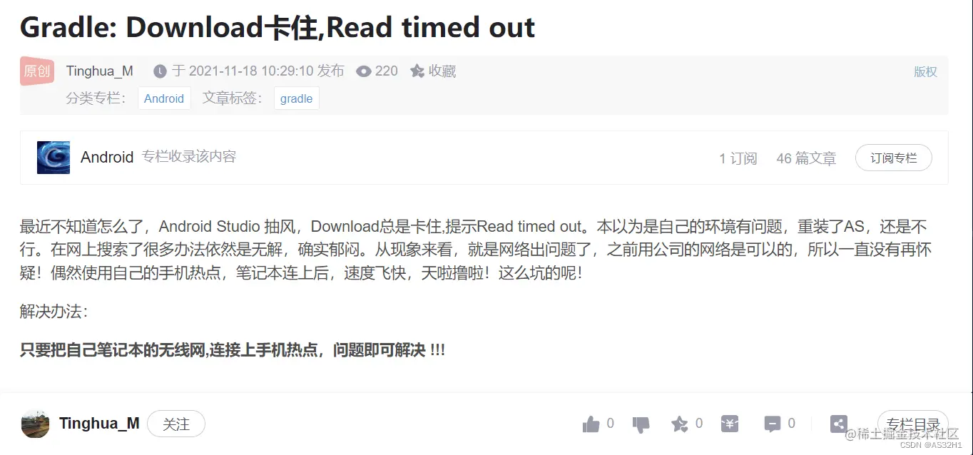 原文地址: (9条消息) Gradle: Download卡住,Read timed out_Tinghua_M的博客-CSDN博客