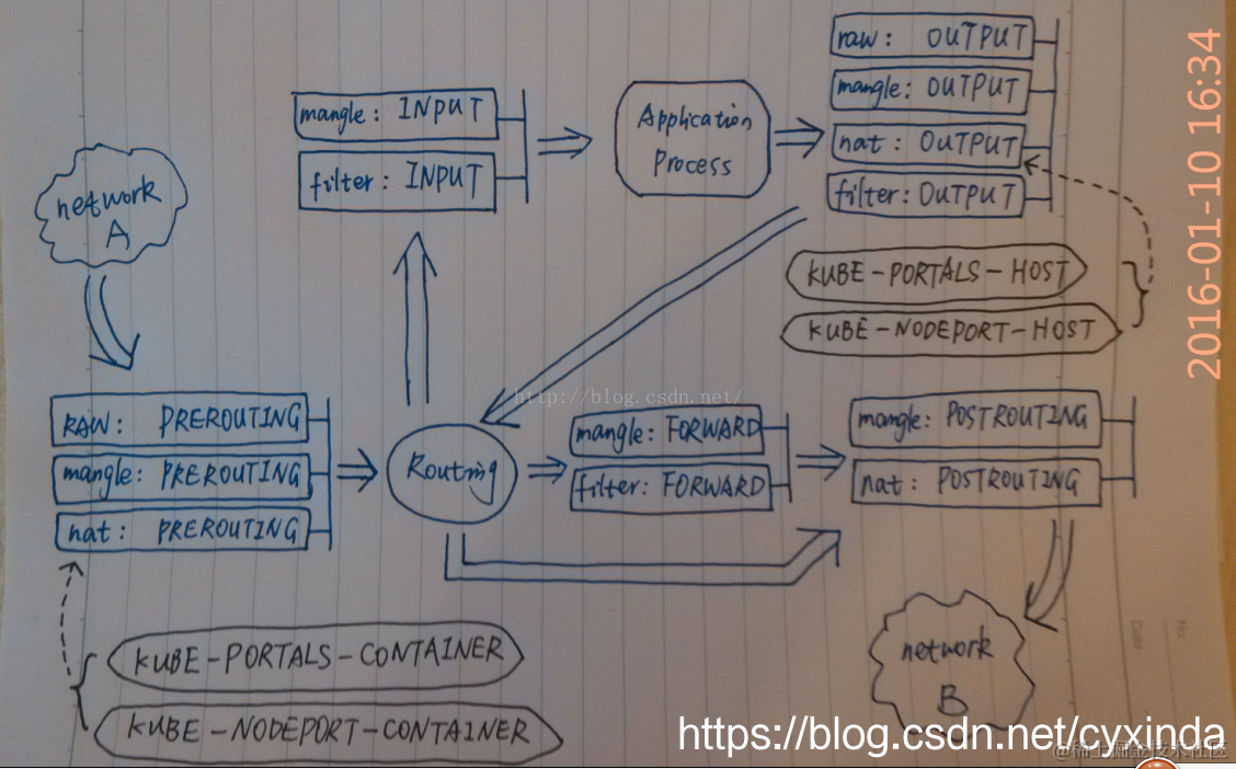 主要将由网络接口到来的通过服务集群入口<cluster ip>:port的请求重定向到本地kube-proxy端口(随机端口)的映射,即来自本地容器的服务访问请求;