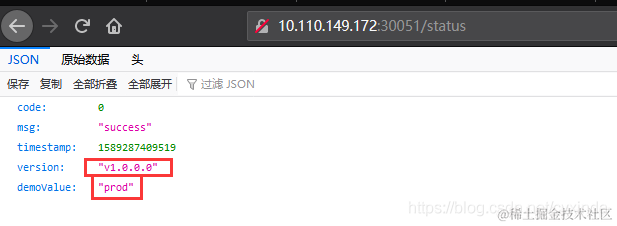 我们在上面的接口中,可以看到在不同的命名空间下,即在测试环境和生成环境中,demoValue的值是不同的,两个值分别来自于两个命名空间下的configMap;