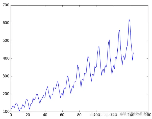 任务是预测国际航空旅客的数量。数据范围为1949年1月至1960年12月,即12年,共进行了144次观测。